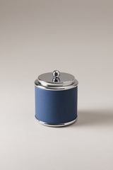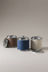 Complemento immancabile all'interno di un set di accessori, il barattolo porta cotone diventa protagonista della stanza da bagno grazie al rivestimento esterno in pelle nautica, in una selezione di nuances morbide e delicate che lo rendono declinabile a più stili ed ambienti. I particolari metallici ed il pomolo in ottone cromato ne sono il perfetto, lucido, completamento.
