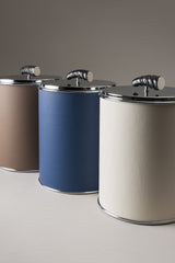 All'interno di uno spazio tanto intimo e delicato come la stanza da bagno, ogni oggetto riveste un'importanza particolare; da quello che occupa il posto d'onore nei momenti riservati soltanto a noi stessi, fino a quello del quale si tende a dimenticare spesso l'innegabile utilità. Il cestino per il bagno è rivestito in vitello nautico, disponibile nei colori, blu avorio e tortora e trattato per resistere all'umidità, il coperchio cromato porta incastonata una caratteristica impugnatura in corno di Springbok, selezionato e lavorato sapientemente per diventare un dettaglio unico e perfetto.