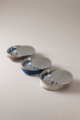Negli importanti rituali di pulizia dei quali la stanza da bagno si fa teatro, l'esperienza tattile degli oggetti riconduce a metodi e scenari di gusto tradizionale. Il porta saponetta da toilette è un vivo richiamo al classico, che grazie all'attualità del materiale cromato unita alla poliedrica varietà di nuances della pelle di vitello nautico, si veste di una identità nuova e ricercata.