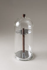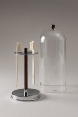 Coronamento ideale di un momento tanto importante della giornata da scandirne, idealmente, sia l'inizio che la fine; una campana in vetro soffiato con pomolo in legno pregiato custodisce, proteggendoli e conservandoli in un luogo perfettamente asciutto, fino a cinque spazzolini da denti. Il fusto che fa loro da sostegno è realizzato nello stesso prezioso materiale, a creare una dimensione ideale dalla levigata bellezza.