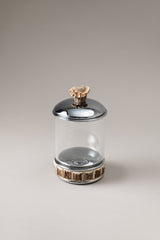 Il vero lusso è poter dare giusto risalto a ogni elemento. Il contenitore per cotton fioc realizzato unendo con sapienza artigiana vetro ed ottone cromato al materiale naturale più ricercato, è l'esempio di uno stile capace di crearsi la sua collocazione e destinazione d'uso, rendendo ciò che è ordinario, irripetibile.