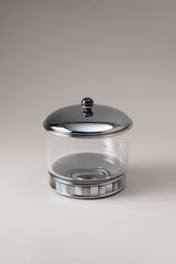 Riservata custode del tempo dedicato a noi stessi, la stanza da bagno merita attenzioni ed oggetti dedicati. Il contenitore in vetro per dischetti di cotone diventa parte di una ricercata selezione di complementi 'alleati', con la sua base in ottone vestita artigianalmente di preziosi tasselli di madreperla. NOTA: Sebbene la madreperla sia un materiale non soggetto a CITES, per le spedizioni internazionali la dogana potrebbe approfondire con ulteriori accertamenti, influendo sui tempi di consegna.