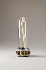 Un oggetto universale, che per sua natura richiede un suo spazio, immancabile all'interno della stanza da bagno. Lo spazzolino da denti trova la sua perfetta copertura nel contenitore in vetro e acciaio inossidabile, arricchito dalle placchette in cervo, sapientemente adagiate per ricreare la ricercatezza, il comfort e la sicurezza di casa e declinarla, nel suo piccolo, in un accessorio tanto indispensabile.
