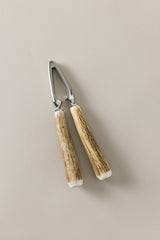 Il posto d'onore al termine di un pasto è tradizionalmente riservato a dolci peccati di gola, piaceri da scoprire e condividere. Il loro guscio è spesso coriaceo ed è per questo che lo schiaccianoci diventa un alleato imprescindibile. Le impugnature in palco di cervo si adattano artigianalmente all'aderenza in acciaio inossidabile, creando un oggetto dalla duplice anima, senza tempo.