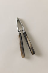Il posto d'onore al termine di un pasto è tradizionalmente riservato a dolci peccati di gola, piaceri da scoprire e condividere. Il loro guscio è spesso coriaceo ed è per questo che lo schiaccianoci diventa un alleato imprescindibile. Le impugnature in corno di Zebù, dalle sorprendenti sfumature svelate artigianalmente, si adattano con maestria all'aderenza in acciaio inossidabile, creando un oggetto dalla duplice anima.