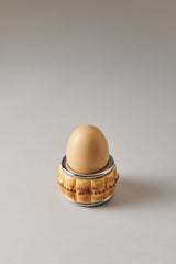 L'essenzialità delle più piccole abitudini è un dono da celebrare quotidianamente. Il porta uovo circonda con la naturale perfezione delle placchette in bambù la gustosa circonferenza dell'alimento, poggiando su di una lucida base in ottone cromato che ne esalta, per quanto possibile, le ruvide sfumature.