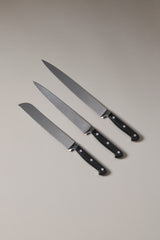 POM (or Polyoxymethylene) is a waterproof synthetic resin, which is very resistant to use. It is a dishwasher safe material, however, for a long lasting quality, we suggest to proceed washing by hand. The supplied instruments are made of stainless steel and therefore they provide a good resistance to oxidation. However, please note that it is better to dry the products before storing them, as they are made of tempered steel. The sharpening of the blades must be entrusted to skilled staff.