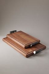Piano di lavoro e base essenziale della più gustosa delle arti: la cucina. Il tagliere in noce Canaletto dispone di due impugnature in corno di springbok per garantirne un'ottima presa ed un migliore trasporto. ll piano in legno è dedicato a servire elegantemente il piatto.