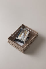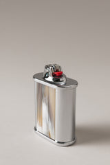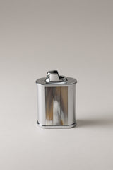 Il porta accendino da tavolo è destinato ad ospitarne un modello Bic basic, che inserito all'interno delle pareti metalliche in ottone cromato impreziosite da inserti in corno dI Zebù, ne amplifica i contorni rendendoli inaspettatamente preziosi. A dimostrazione di come 'l'abito' possa davvero contribuire talvolta a fare il 'monaco'. (ACCENDINO BIC NON INCLUSO).