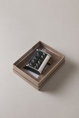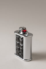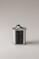 Il porta accendino da tavolo è destinato ad ospitarne un modello Bic basic, che inserito all'interno delle pareti metalliche in ottone cromato impreziosite da inserti in corno d'Orice, ne amplifica i contorni rendendoli inaspettatamente preziosi. A dimostrazione di come 'l'abito' possa davvero contribuire talvolta a fare il 'monaco'. (ACCENDINO BIC NON INCLUSO).