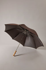 Esistono però modi e modi per affrontare imprevisti e repentini cambiamenti metereologici: l'ombrello telescopico da viaggio, con la sua possente impugnatura in radice di bambù, permette di farlo con pratica solidità ed impareggiabile stile.