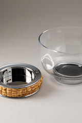 Il vero lusso è poter riservare ad ogni cosa giusti spazi e modi: l'insalatiera in vetro soffiato è circondata da una base completamente decorata da tasselli di bambù, che la rendono icona di una tavola fresca e moderna. La base è rimovibile per permettere una pulizia dedicata ed il lavaggio della parte in vetro in lavastoviglie.