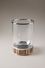 Realizzato in vetro soffiato, con coperchio ed impugnature in ottone cromato, è reso unico dai preziosi dettagli in palco di cervo, artigianalmente lavorato.