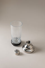 Un oggetto dalle suggestioni retro che ci parla di celebrazione in chiave glamour, immancabile nel repertorio di stile di chi non concepisce un fine senza il giusto mezzo; il cocktail shaker in cristallo ha la base in ottone cromato, sapientemente decorata incastonandone tra i bordi delle placchette in vigoroso corno di orice. Il coperchio in acciaio inossidabile ha la chiusura ermetica, a garantire la perfetta riuscita del drink. E della serata.