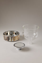 Per assaporare un gusto all'apice della sua purezza, a volte si rende necessario un filtro a precederne la degustazione. Il filtro per decanter è pensato proprio per evitare che eventuali residui compromettano la fruibilità di un buon vino. Il set è composto da un imbuto in vetro soffiato all'interno del quale viene posizionato il filtro in acciaio inox. Insieme, questi due elementi vengono posti sul decanter per versare il vino, che arriva così nel calice privo di impurità ed al massimo delle sue caratteristiche uniche. Il piattino decorato con placchette di zebù ne diventa il contenitore finale, per non perdere di vista neanche per un momento la preziosità della sua presenza. Dentro e fuori la tavola.