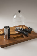 Quando esperienza ed artigianalità, seppur diverse, si incontrano: il set da parmigiano è composto da una campana in vetro soffiato, grattugia, coltello e forchetta da parmigiano adagiati su di un vassoio in legno Iroko rifinito con olio di lino. Tutte le impugnature sono realizzate adattando la natura del corno di Springbok allo strumento da impreziosire, così da valorizzare magistralmente il momento ed il gusto dedicati ad un prodotto simbolo dell'eccellenza gastronomica italiana nel mondo. In particolare, l'impugnatura della grattugia è agevolmente divisibile dallo strumento per facilitarne pulizia e lavaggio.