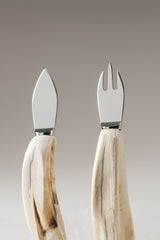The Warthog tusk is a very tough material, resistant both to shocks and to temperature and humidity changes. Nonetheless, being a natural substance, its color could fade and it might lose its original shine over time, especially as regards those objects which often come in contact with water. In case of dehydration we recommend a periodic application of a thin layer of ecological linseed oil or Vaseline, using a dry cotton cloth. Washing, when required, must be done by hand, with lukewarm water and mild detergents. Do not leave the material to soak and dry it thoroughly before storing it. The supplied instruments are made of stainless steel and therefore they provide a good resistance to oxidation. However, please note that it is better to dry the products before storing them, as they are made of tempered steel. The sharpening of the edges must be entrusted to skilled staff.