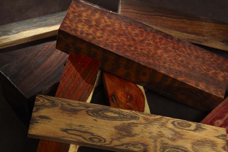 La lavorazione del legno appartiene a mestieri di antica tradizione ed è un connubio tra manualità, esperienza ed evoluzione tecnica. Le pregiate essenze esotiche, native del Sud America e dell’Africa sono naturalmente impregnate di oli vegetali e, opportunamente rifinite, conferiscono agli oggetti una lucentezza ed una consistenza setosa. L’ebano del Gabon, dal color nero intenso, l’ebano Makassar, dalle fittissime venature, l’amoretto, dal scaglioso ed intrigante aspetto, il cocobolo con le sue variopinte sfumature, consentono la produzione di eleganti manufatti. La brillantezza delle superfici si ottiene tramite una semplice lucidatura a cera d’api, senza l’aggiunta di alcun rivestimento artificiale.