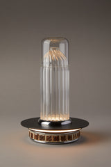 Stag antler, Glass, Aluminum, Chrome plated brass