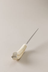 Un'artigianalità che rispolvera l'anima romantica di un materiale tanto amato quanto spesso surclassato; il tagliacarte in acciaio inossidabile è realizzato con un'impugnatura in zanna di facocero che esalta la primitiva personalità del materiale. La sua lama è moderatamente tagliente, ad esclusivo uso e consumo del materiale per il quale è stata creata.