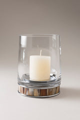 Disposte ad hoc per illuminare l'atmosfera di un giardino o strategicamente accese nella calda penombra del salotto, le candele sono da sempre l'elemento ideale per illuminare e creare l'ambiente. Il porta candele rende trionfante questa mission; realizzato artigianalmente in vetro soffiato è decorato da inserti in corno di Zebù, materiale perfetto per un'atmosfera informale ma ricercata.