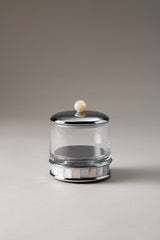 Il carattere solido ma al contempo poliedrico della madreperla, attraverso una sapiente applicazione su misura a fondo e pomolo del coperchio del contenitore, contribuisce ad amplificare lo charme di un porta candele che ben si presta ad illuminare spazi interni ed esterni. NOTA: Sebbene la madreperla sia un materiale non soggetto a CITES, per le spedizioni internazionali la dogana potrebbe approfondire con ulteriori accertamenti, influendo sui tempi di consegna.