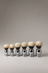 Quello della rasatura è un rito da assecondare tanto quanto la precisa manualità che richiede. Il pennello da barba in puro pelo di tasso argentato, garanzia di durevolezza ed estrema piacevolezza nell'applicazione, trova l'incastro perfetto nell'impugnatura in ottone cromato. La base nasconde un dettaglio in corno di Springbok, pensato per essere l'ideale trait-d'union con uno dei rasoi realizzati nello stesso materiale dal carattere tanto marcato e primitivo. Disponibile in 6 misure: dai 16 ai 26 mm di diametro.