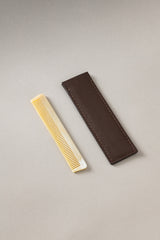 Custodito nella sua morbida guaina in pelle, il pettine per barba baffi è realizzato interamente in corno di zebù, materiale dall'estetica piacevolmente ricercata quanto l'attività che l'oggetto è chiamato a svolgere.