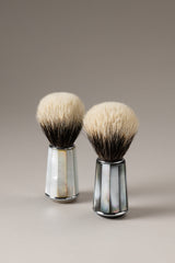 Quello della rasatura è un rito da assecondare tanto quanto la precisa manualità che richiede. Il pennello da barba in puro pelo di tasso argentato, garanzia di durevolezza ed estrema piacevolezza nell'applicazione, trova l'incastro perfetto nell'impugnatura in madreperla. NOTA: Sebbene la madreperla sia un materiale non soggetto a CITES, per le spedizioni internazionali la dogana potrebbe approfondire con ulteriori accertamenti, influendo sui tempi di consegna.