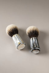Mother of pearl, White mother of pearl, Badger hairs, Chrome plated brass, Silvertip badger hair