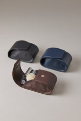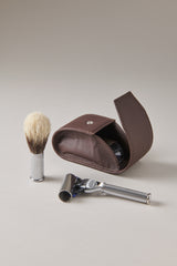 Un rito imprescindibile nella quotidianità di un uomo, la rasatura è un momento al quale è d'obbligo dedicare tempo e cura. Anche e specialmente fuori casa, laddove la situazione può imporlo maggiormente, l'astuccio in morbida nappa di agnello contiene un vero e proprio kit in grado di sopperire alla perfezione alla mancanza degli oggetti domestici; un piccolo Rasoio Gillette Fusion con protezione rimovibile, un pennello da barba con ciuffo in puro pelo di tasso argentato ed una tasca interna per contenere le lame di ricambio. Ogni accessorio è realizzato con impugnature con ottone cromato.