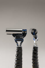 Parte di una quotidiana routine che non ammette errori, il rasoio è realizzato con altrettanta cura artigiana per adattare le lame Gillette Fusion all'impugnatura in springbok. Il rasoio dispone di un coprilama e di una custodia in pelle disponibile in tre varianti di colore.