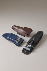 Parte di una quotidiana routine che non ammette errori, il rasoio è realizzato con altrettanta cura artigiana per adattare le lame Gillette Fusion all'impugnatura in fibra di carbonio. Il rasoio dispone di un coprilama, una pietra emostatica sul fondo e di una custodia in pelle disponibile in tre varianti di colore.