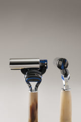 Parte di una quotidiana routine che non ammette errori, il rasoio è realizzato con altrettanta cura artigiana per adattare le lame Gillette Fusion all'impugnatura in corno di zebù. Il rasoio dispone di un coprilama e di una custodia in pelle disponibile in tre varianti di colore.