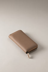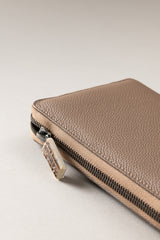 Ideale per contenere in uno spazio ridotto tutto ciò che è necessario, il portafogli rigido in vitello nautico si schiude con la cerniera per rivelare un interno tono su tono e pratici scomparti dove riporre documenti, carte e monete. I tiretti della zip, in materiale naturale, rendono unico un accessorio che non può mancare tra gli ordinari tesori di una donna.