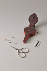 L'essenziale è spesso invisibile agli occhi. Lo è sicuramente nel caso del set da cucito da viaggio, che custodisce all'interno dell'astuccio in nappa, tutto quanto è necessario per i piccoli interventi stilistici d'emergenza: forbicina, spilli, aghi, spille da balia.