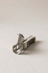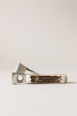 The deer or roe deer antler is a rather resistant material, both to shocks and to temperature and humidity changes. Nonetheless, as it is a natural substance, its color could fade, and it might lose its original shine over time, especially as regards those objects which often come in contact with water. In case of dehydration we recommend a periodic application of a thin layer of ecological linseed oil or Vaseline, using a dry cotton cloth. The supplied instruments are made of stainless steel and therefore they provide a good resistance to oxidation. However, please note that it is better to dry the products before storing them, as they are made of tempered steel. The sharpening of the edges must be entrusted to skilled staff.