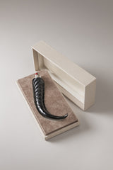 The springbok horn is a rather resistant material, both to shocks and to temperature and humidity changes. Nonetheless, being a natural substance, its color could fade and it might lose its original shine over time, especially as regards those objects which often come in contact with water. In case of dehydration we recommend a periodic application of a thin layer of ecological linseed oil or Vaseline, using a dry cotton cloth.