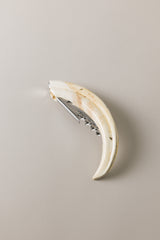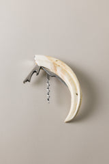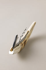 Il cavatappi con apribottiglie e lama a coltellino in acciaio inossidabile trova il suo spazio su misura all'interno della zanna di facocero; una corazza estremamente duttile che viene fresata artigianalmente per diventarne l'alloggio perfetto. Uno strumento dall'allure professionale che, da solo, deve bastare al perfetto sommelier nella manifestazione più pratica della sua arte.
