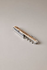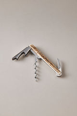 Il cavatappi con apribottiglie e lama a coltellino in acciaio inossidabile riporta applicate delle preziose finiture in palco di cervo. Uno strumento dall'allure professionale che, da solo, deve bastare al perfetto sommelier nella manifestazione più pratica della sua arte.