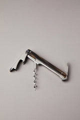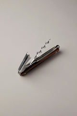 Il cavatappi con apribottiglie e lama a coltellino in acciaio inossidabile riporta applicate delle preziose finiture in corno di zebù. Uno strumento dall'allure professionale che, da solo, deve bastare al perfetto sommelier nella manifestazione più pratica della sua arte.