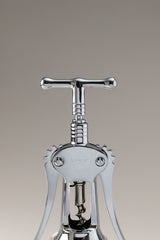 Shiny and sleek, designed to witness and celebrate your most special occasions. This wing corkscrew is made entirely of chrome-plated brass, illuminating the solid transparencies and full-bodied shades of the liquid treasure that it will reveal.