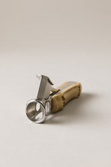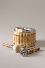 The bamboo root is an elastic material, yet sensitive to temperature and humidity changes. Being a natural substance, it might fade in color and lose its original shine over time, especially as regards those objects which often come in contact with water. Heat sources (radiators, flames, halogen lamps, etc.) might cause deformations or torsions. In case of dehydration we recommend a periodic application of a thin layer of ecological linseed oil or Vaseline, using a dry pad. The metal parts are not to be cleaned with abrasive substances but simply by using a buckskin cloth, or else in the case of persistent stains or smudges, with a cotton cloth dampened in denatured alcohol. The supplied instruments are made of stainless steel and therefore they provide a good resistance to oxidation. However, please note that it is better to dry the products before storing them, as they are made of tempered steel. The sharpening of the edges must be entrusted to skilled staff.