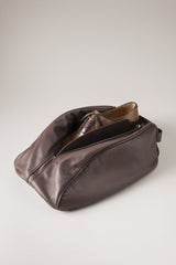 Like a second skin, the nappa envelope with washable fabric interiors becomes a soft and elegant shell for the carrying of shoes. A shoe case with a masculine and rigorous line which fits by right into the perfect travel kit.