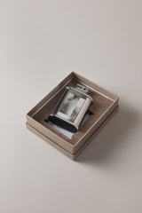 A demanding type of smoking, which requires specific rituals and tools. A desk cigar lighter becomes an emblem of refinement and perfection of the moment. The metallic details are in vivid chrome-plated brass, while the white or grey mother of pearl.