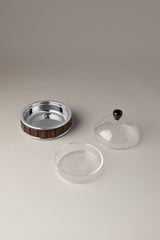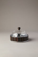 Wood, Makassar ebony, Glass, Chrome plated brass