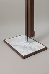 Marmo bianco Carrara, Noce canaletto, Ottone cromato, Vitello nautico, Vetro
