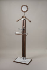 White Carrara marble, Walnut tree, Chrome plated brass, Nautical leather, Glass