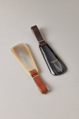 Now you can always have the luxury of style at your feet. Made of precious zebu horn, this mini shoehorn encapsulates functionality in its small size. An essential item, perfect to keep in your bag or suitcase, it features a hand-sewn leather strap designed to facilitate use and grip.