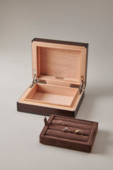 This small jewellery box in Rosewood is designed to hold, in its refined cedarwood interior, a soft alcantara ring tray, which can be removed if necessary to repurpose it as a precious container or valet tray for your precious items.